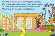 Mr. Gregory Grumm (also known as Dr. Gregory Grumm in the 2016 edition) is the Principal of the School Mayzie McGrew attends. His offices if full of books that he likes to read. He is seen reading a a few books with a looking machine as the The Cat in the Hat in his office introduces him to the viewers.