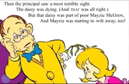 When Miss Sneetcher informs what has happened to Mayzie, Mr Grumm studies the daisy on Mayzie head but when he notices the daisy going dead its costing Mayzie her life as well as he also notices her feeling dehydrated. he Quickly orders Miss Sneetcher to get her some water. She obeys and grabs a vase of flowers that has water in it and splashes it onto Mayzie's head as she and the daisy are feeling well and hydrated again.