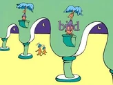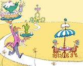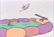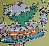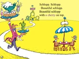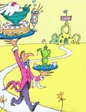 - On page 6-7 of the video of the book, the waiter (who is delivering the food to the two bird girls) has been shrunken 2 or 3 inches a bit as he approaches the girls. The cherry on the Schlopp isn't their until the narrator Marian Hailey Moss mentions it. The scenery on the top of this page is lowered a bit were you see the line of the page by the yellow sky.