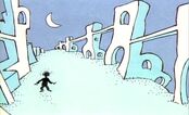 - On page 14-15 of the video of the book, a extra walk way is drawn into the scenery as the two Arabians of Na-Nupp are walking home.