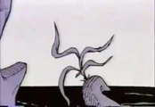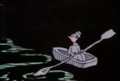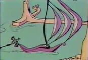 - Page 12-13 of the video of this book, Everything is the same where you'll see black water, a white sky and a man in a boat but none of the bloogs are flying out the hole in the rock formation in the water on the video as they originally came from in the book.