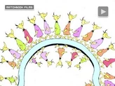 - On page 1 of this video of the book, the background seems to be green but in the book the background is white. Also the walking birds have no color at the time but are gray. When the narrator mentions the color yellow the birds skin color and the hoop turns yellow and then when she mentions blue their clothes are blue. These are the same birds from the cover of this book who are wearing different color dresses.