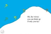- As the narrator closes with the quote "Oh the thinks you can think up if only you try!", you will see all the characters from the recent pages of this book used in a white background as the scene repeatedly changes. Then you will see a Snuv in a glove waving good-bye to the viewers as the story of this book ends.