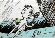 - Page 14-15 you'll see a fast creature coming in then you'll see a snail like moving creature moving slowly, then you'll see a creature flying in with a fan propeller tied to him and then a creature coming out of a hole in the ground. Jay and Kay are seen watching the creatures. At the end of the seen the fast creature comes back slowly.
