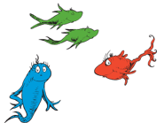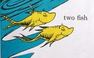 One Fish Two Fish Red Fish Blue Fish is a book written by Dr. Seuss in 1960. A simple rhyming book for learner readers, it is a book with a freewheeling plot about a boy and a girl (who do not appear to be Conrad and Sally from The Cat in the Hat) but appear to be Jay and Kay as thier names are later revealed from the book "What Pet Should I Get?", and the many amazing creatures they have for friends and pets.