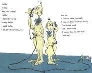 - On page 52-53, the mouse who had cut the wire of the telephones goes back into his mouse hole. It is unknown if this is the same mouse from page 25 when the mouse was sitting on Ned's feet and page 29 from where he was looking at the man holding a bird with an old hat and gold teeth.
