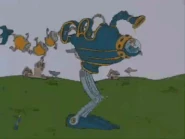 Despite all of that humilation, The Right Side Up Song Girls gently sing an encouraging song. The Chief promotes Grandfather to be a General. They have also finished their artillery vehicle, an Utterly Sputter. It is a semi automatic weapon capable of learning and adapting, armed with poison meant for The Zooks to get Allergies. The Utterly Sputter contains in its stern four fuel tanks designed to dust crops. Each tank has two spouts, with the exhaust at the very end. Grandfather test drives it, and immediately proceeds towards the zone with crowds of Yooks following.