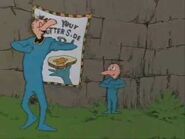Grandfather walks away slowly and in shame, with other citizens supporting him. Chief Yookeroo tells him to stop using Snickberries and instead the defense contractor builds a powerful weapon. The agile engineers take notes and discuss with each other in a language that Grandfather does not understand, most likely it is advanced math. They decorate his uniform, and give him the weapon: A Triple Sling Jigger armed with potatoes. He immediately pushes it towards the zone with every body on the way cheering. The Butter Up Marching Band And Flag Team joins him shortly.