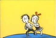 While the illustrators leave the original outfits of Dick and Sally intact, they've made changes to Thing 1 and Thing 2. In the original "The Cat in the Hat" book and the special, Thing 1 and Thing 2 had plain white skin and blue hair and wore red sleepers. In "The Cat in the Hat's Learning Library," the illustrators have changed the Things' appearance so that they have pink skin and yellow hair and wear blue sleepers.