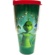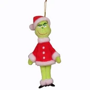 - Instead of his Santa suit, the Grinch wears a red and white striped necktie to the Christmas dinner.