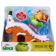After the Grinch is annoyed that the Whos brought a gigantic Christmas tree to town, he attempts to destroy the tree by catapulting a giant snowball at it, but it backfires and he ends up catapulted himself and soon, all the festivities take him back to his sad childhood where he is all alone in an orphanage while all of the other Whos were taken by families.